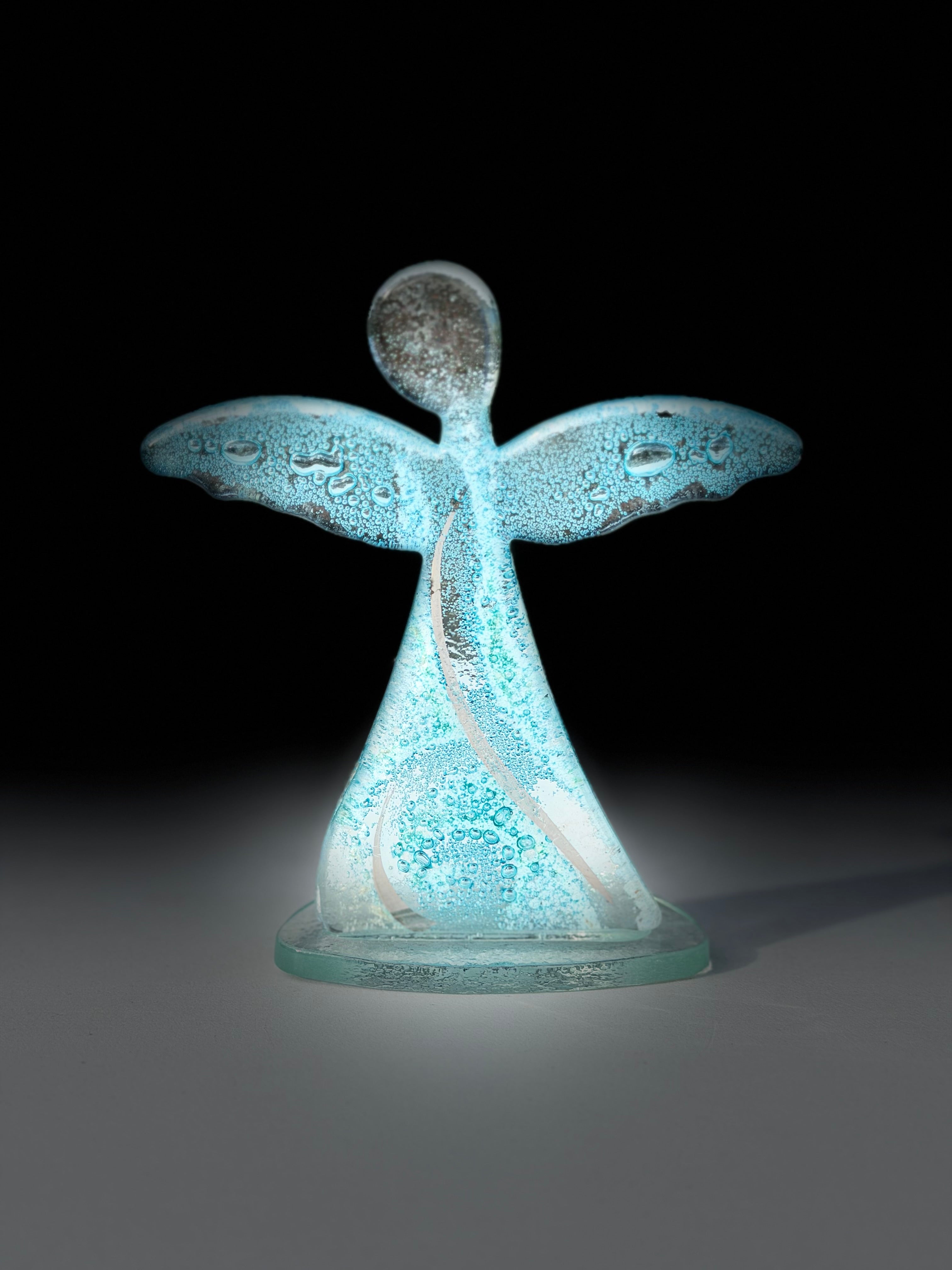 This fused glass angel figurine is handcrafted in Greece by Eratini Artistic Glass Studio. They are world renowned for their unique, vibrant designs with incredible detail. It is evident that creating gorgeous glass art for your home is their passion, with the many colour schemes they produce you won't struggle to find the perfect piece for your home.
