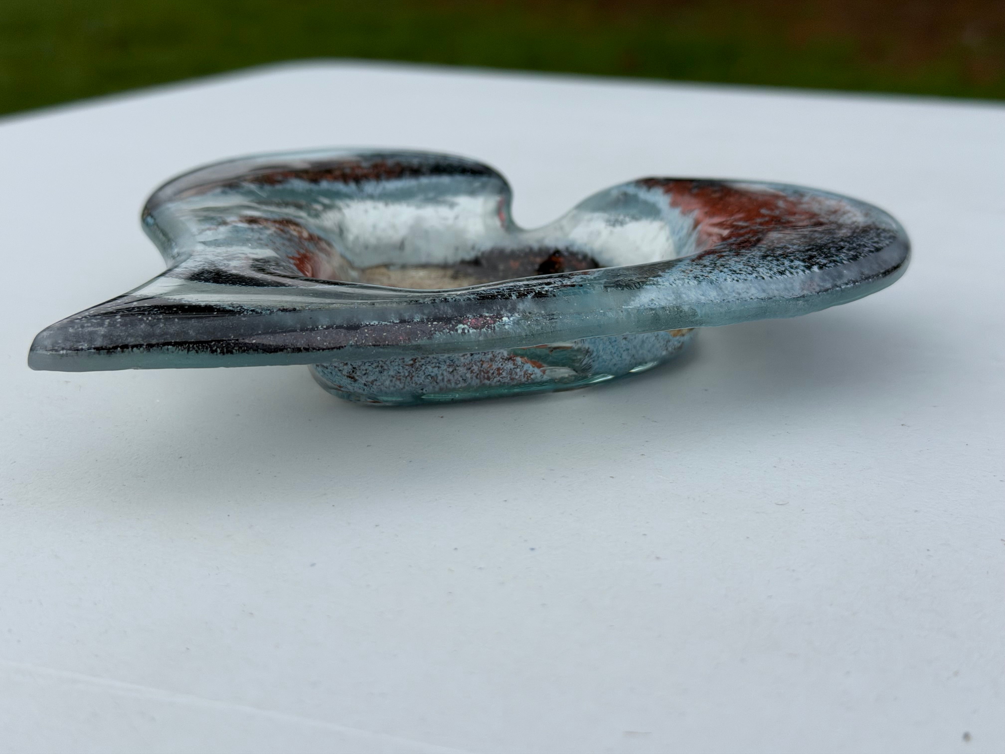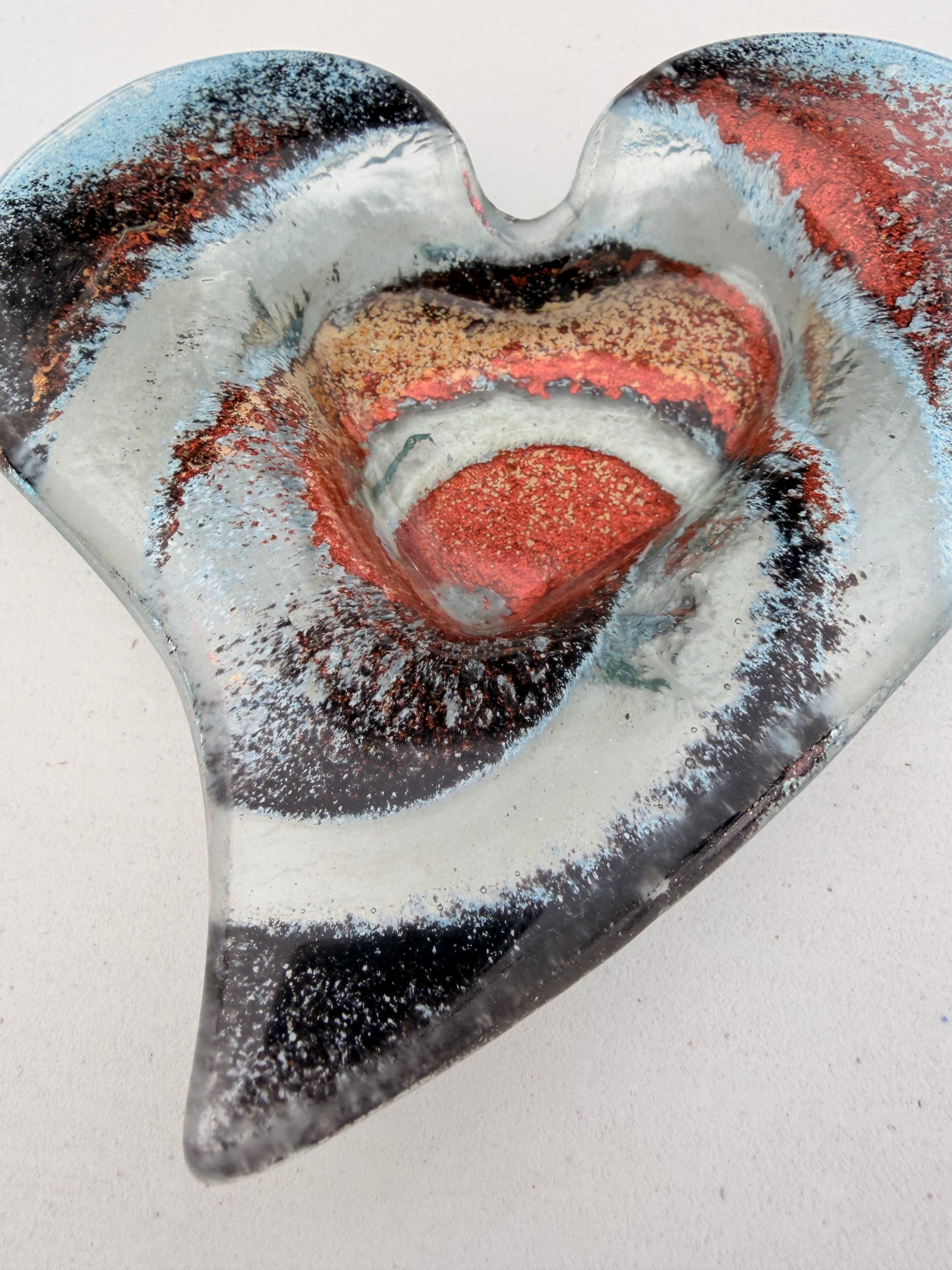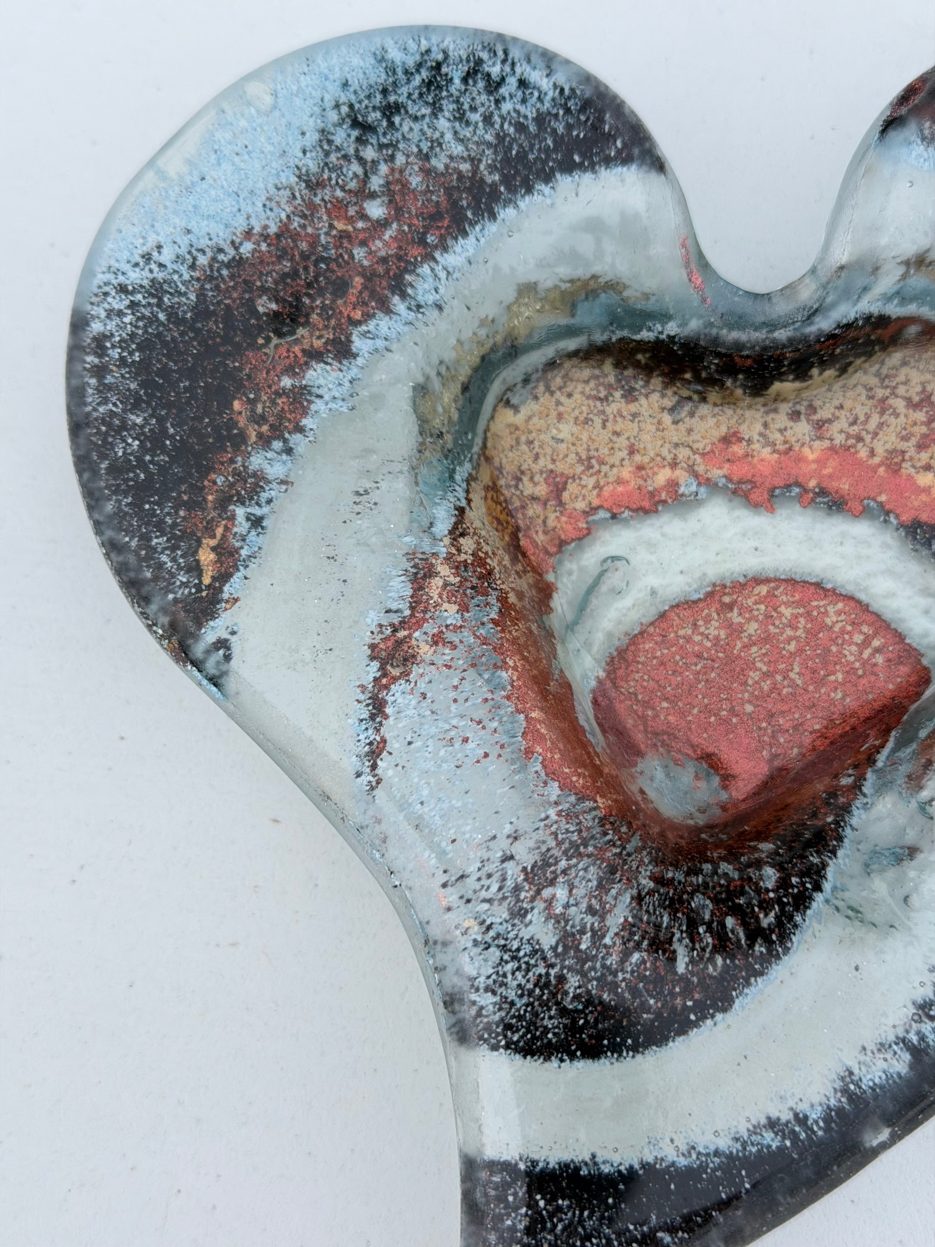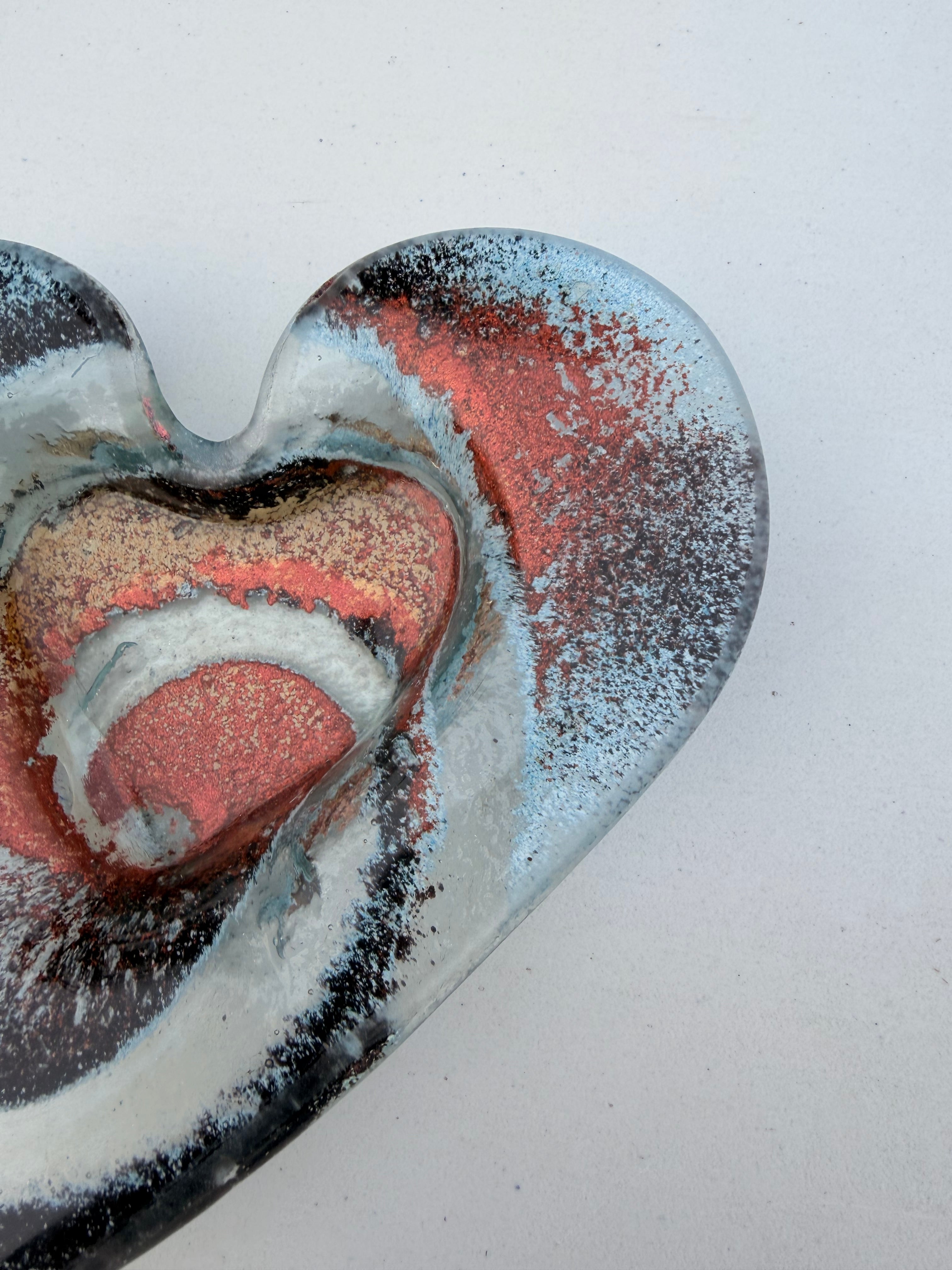 A stunning glass heart tealight dish crafted in the colour of Nefeli Copper.
