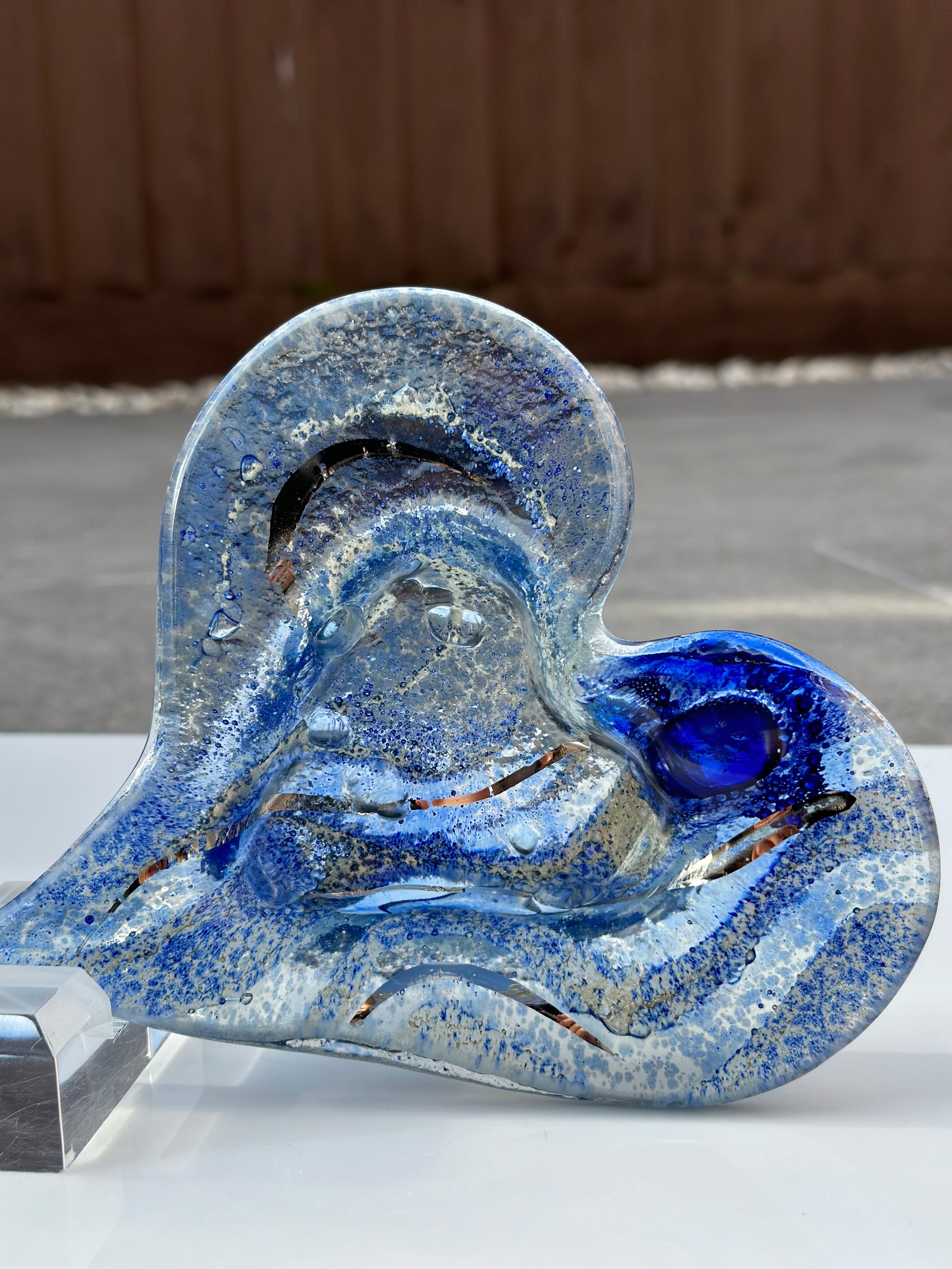 A distinctive clear glass base, infused with elements of silver, white, gold and platinum, with bubbled dark blue throughout to give a sophisticated finish to the overall aesthetic of these beautiful ornaments.