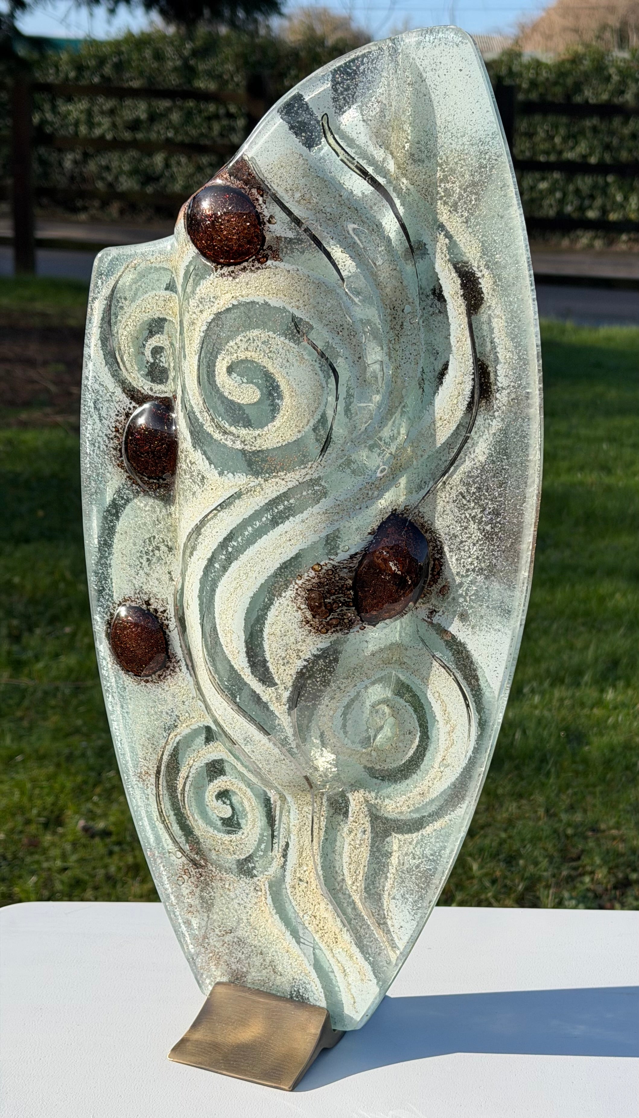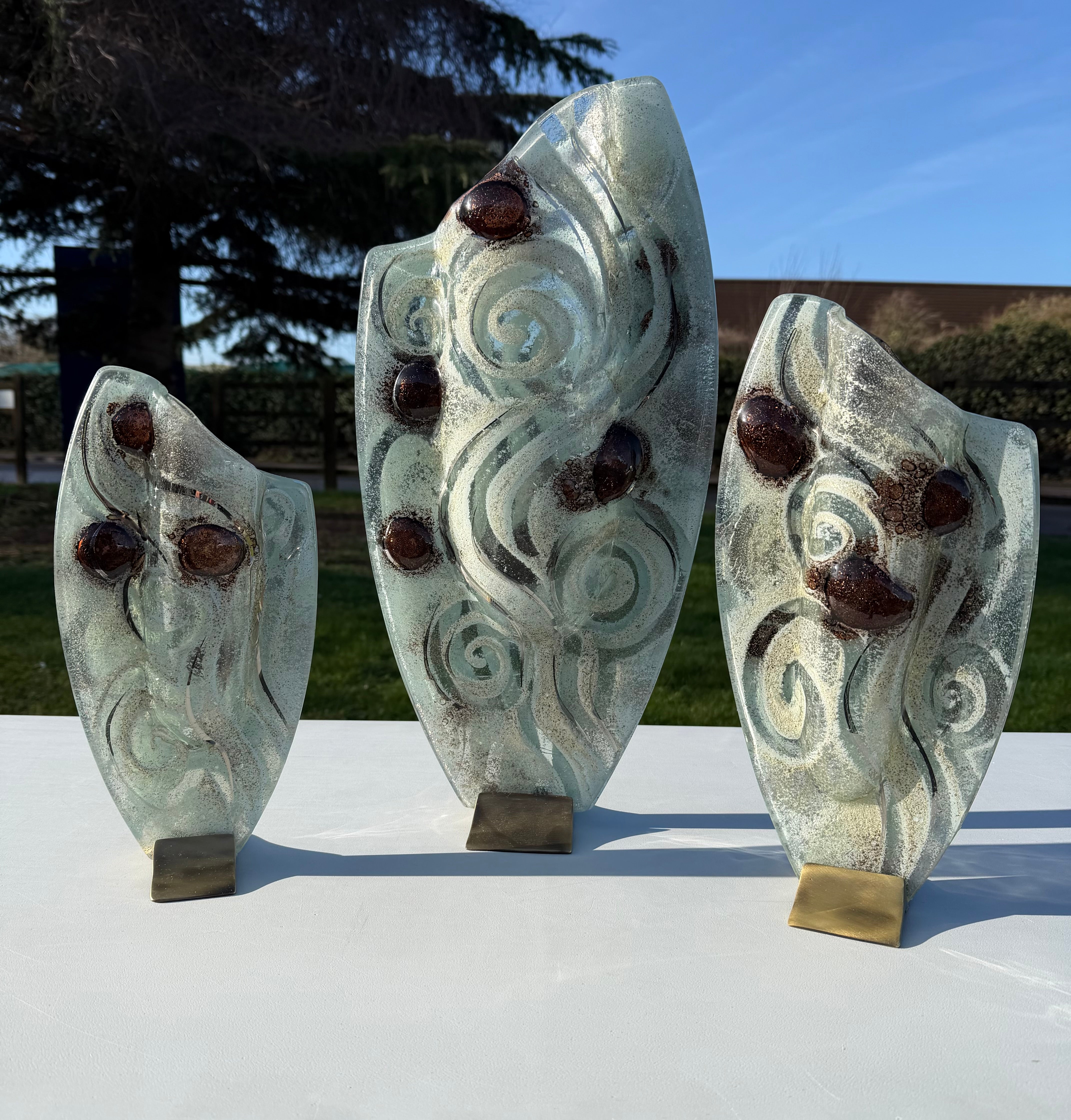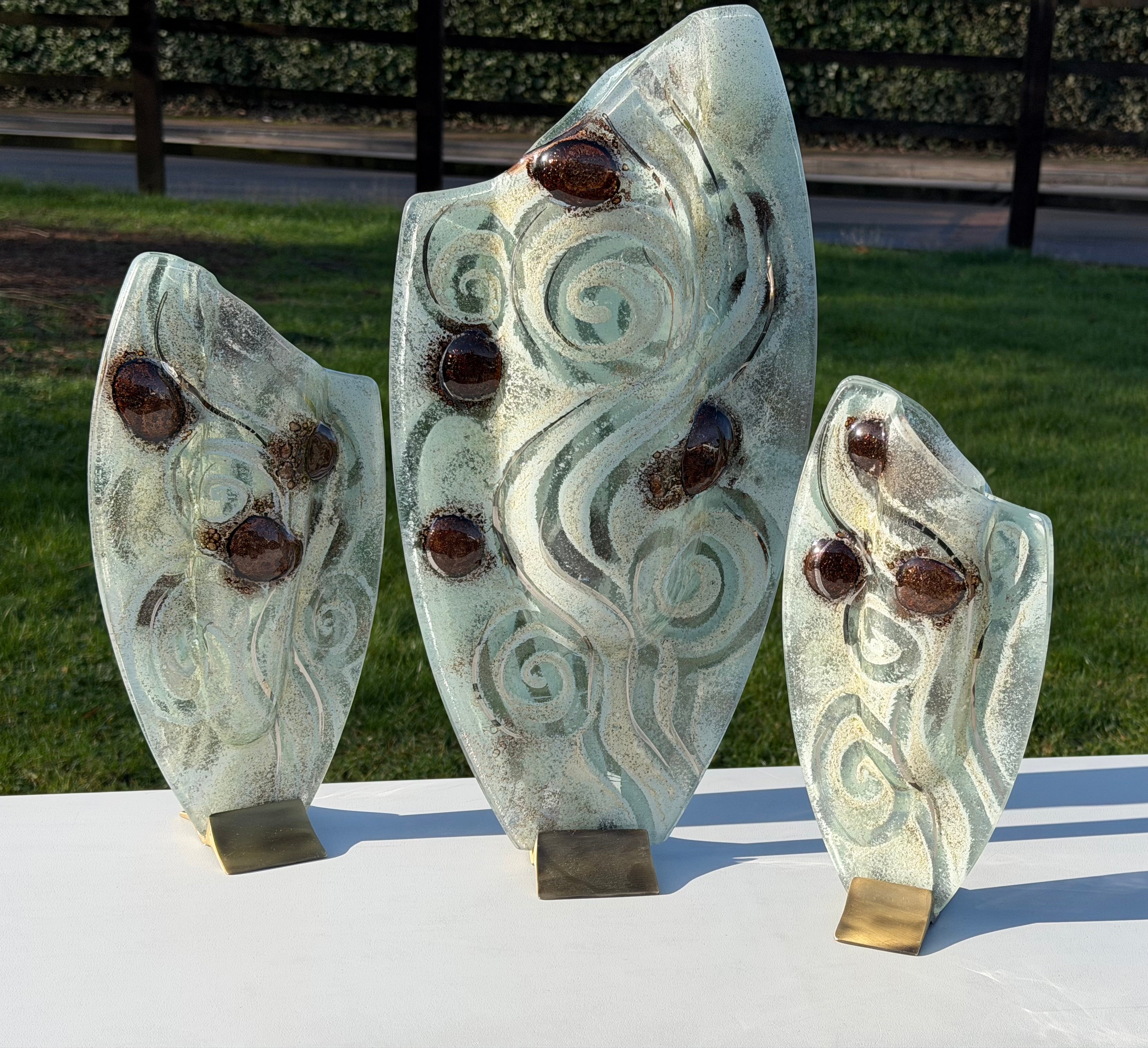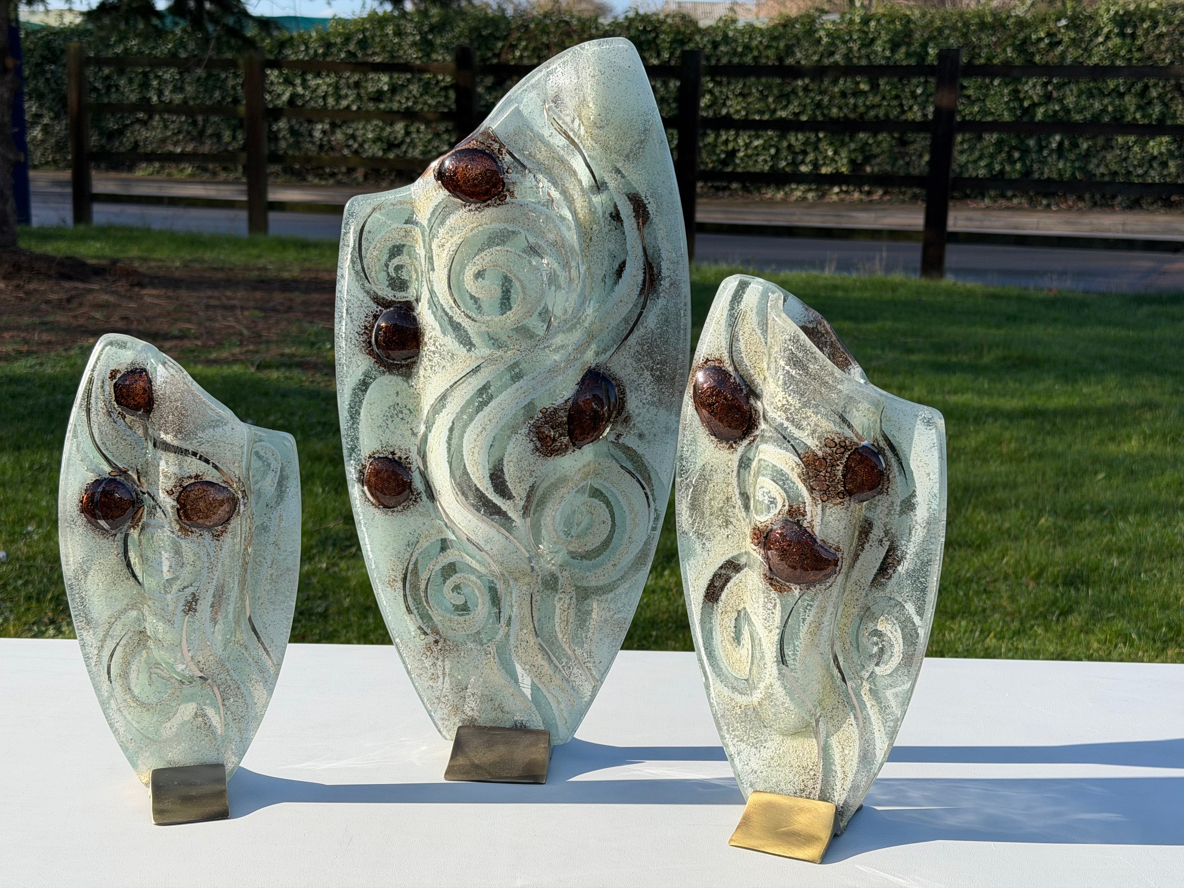 These beautiful vases are part of our Crystal collection. A distinctive clear glass base, infused with elements of silver, white, gold and platinum - along with stunning glistening brown ‘eyes’. All giving a sophisticated finish to the overall aesthetic of these beautiful ornaments.