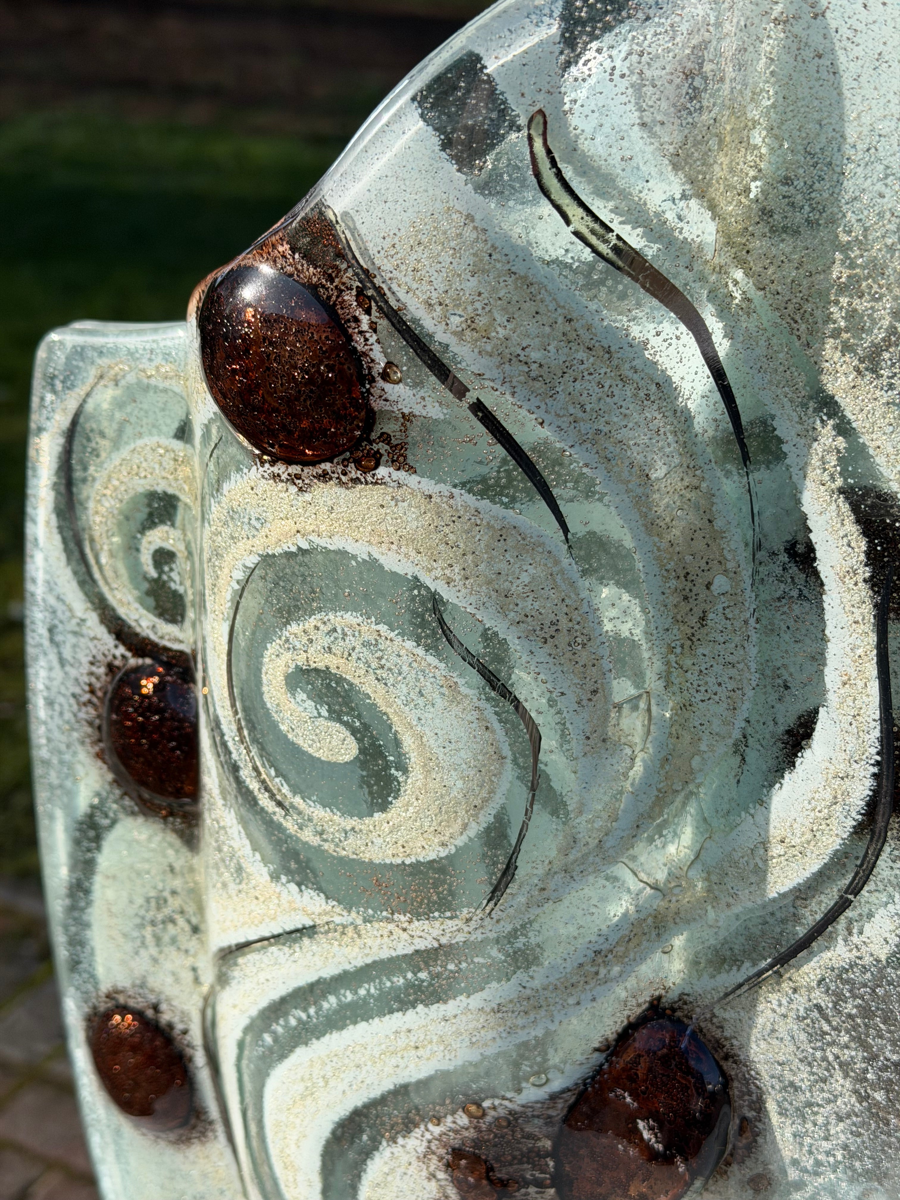 This vase is handcrafted by Eratini Artistic Glass studio in Greece. They are world renowned for their striking use of colour and the unique artistic vision behind the fused glassware they produce.