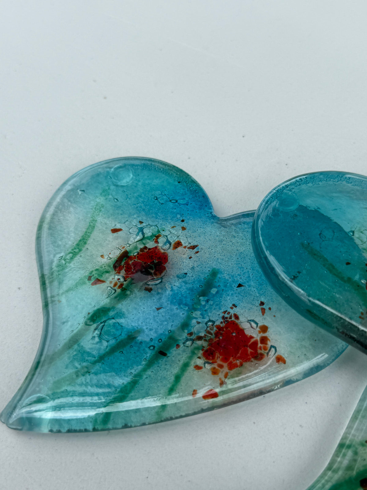 This beautiful colour scheme contains pieces of glass that are coloured in a mixture of blue and green transparent glass, with aspects of green and red throughout.